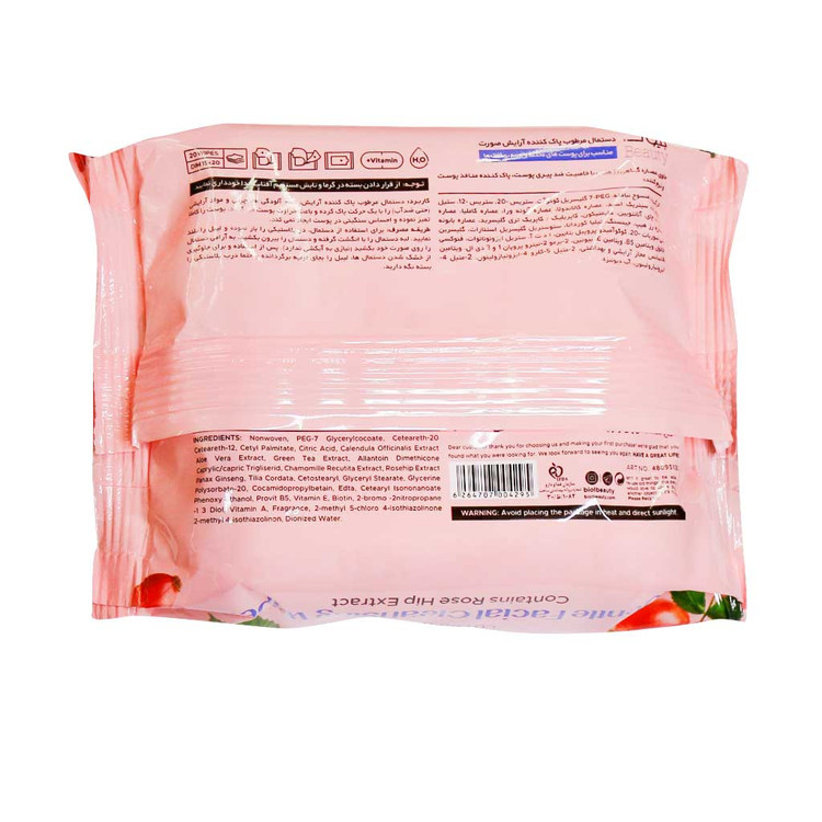 دستمال مرطوب صورتی بیول، پاک کننده آرایش و چربی های اضافه سطح پوست بوده و با یک حرکت پوست صورت و منافذ باز شما را تمیز کرده، از پیری پوست جلوگیری کرده و سبب طراوت پوست شما می شود.