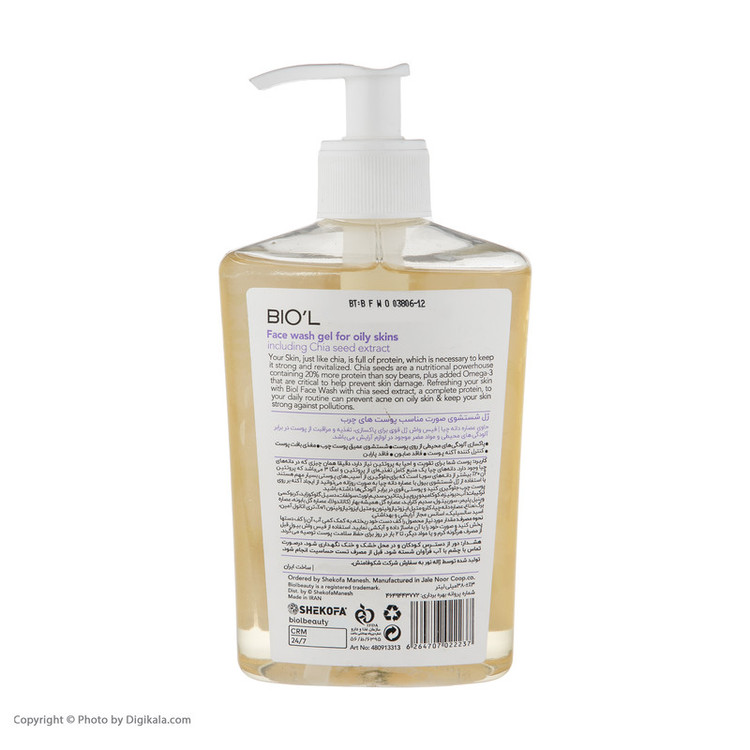ژل شستشوی صورت بیول مدل Chia Seed مناسب پوست چرب بوده و سبب پاکسازی آلودگیهای محیطی از روی پوست میشود. همانطور که میدانید در دنیای امروزی شستشوی صورت تنها با آب کافی نیست. چراکه آب قادر به زدودن آلودگیها از منافذ پوست نیست. در همچین شرایطی برای شستشوی عمیق پوست، مراقبت از آن در برابر عوامل مضر خارجی و افزایش شادابی و درخشش میبایست از شویندههای سازگار با پوست خود استفاده نمایید.