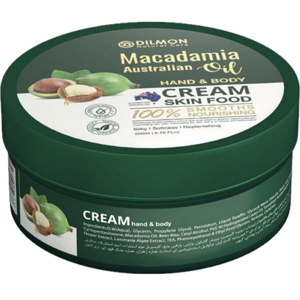 کرم مرطوب کننده دست وبدن کاسه ای دیلمون حاوی عصاره ماکادمیا استرالیایی